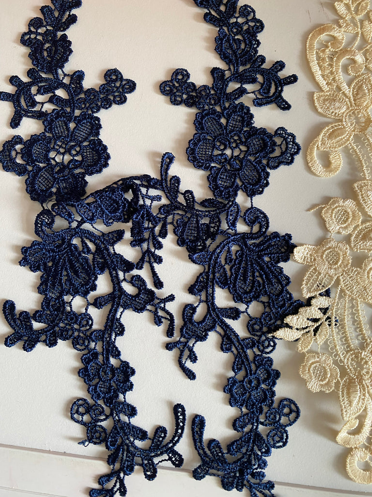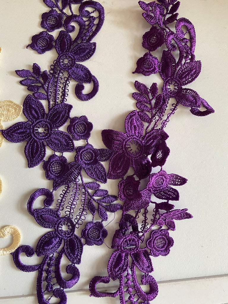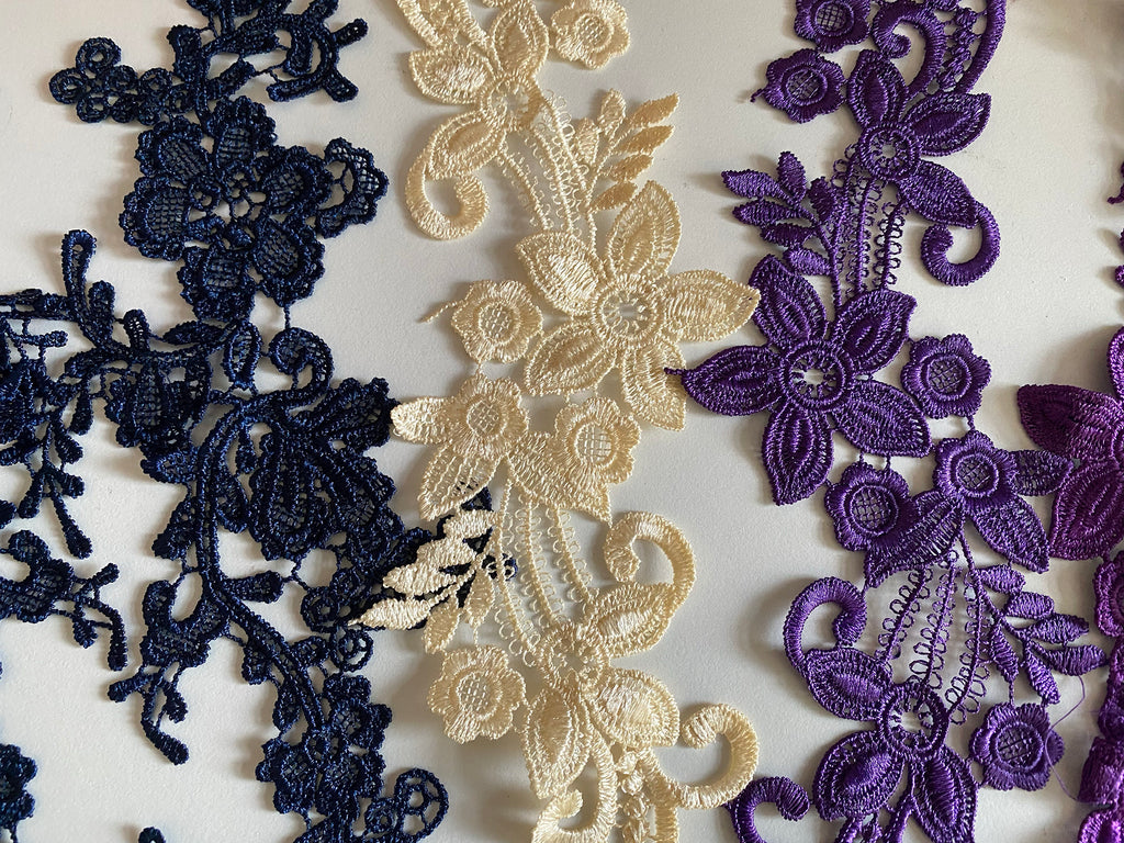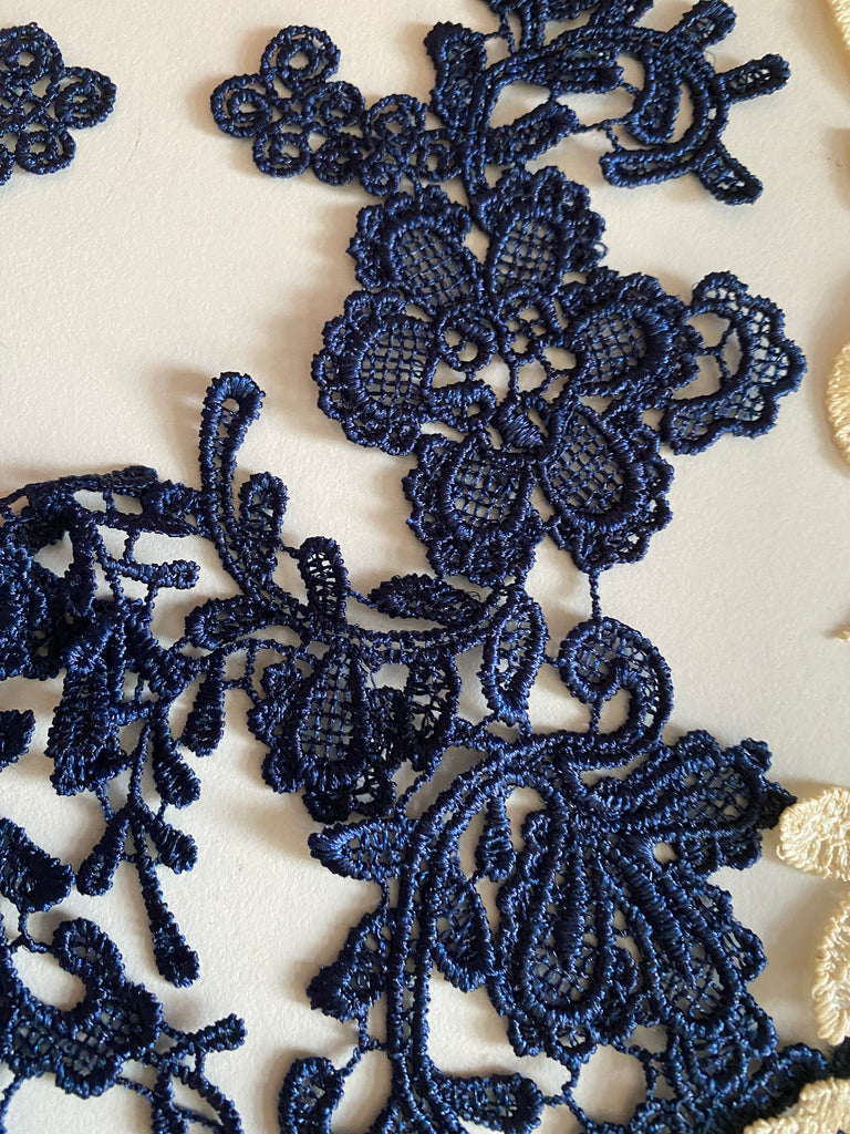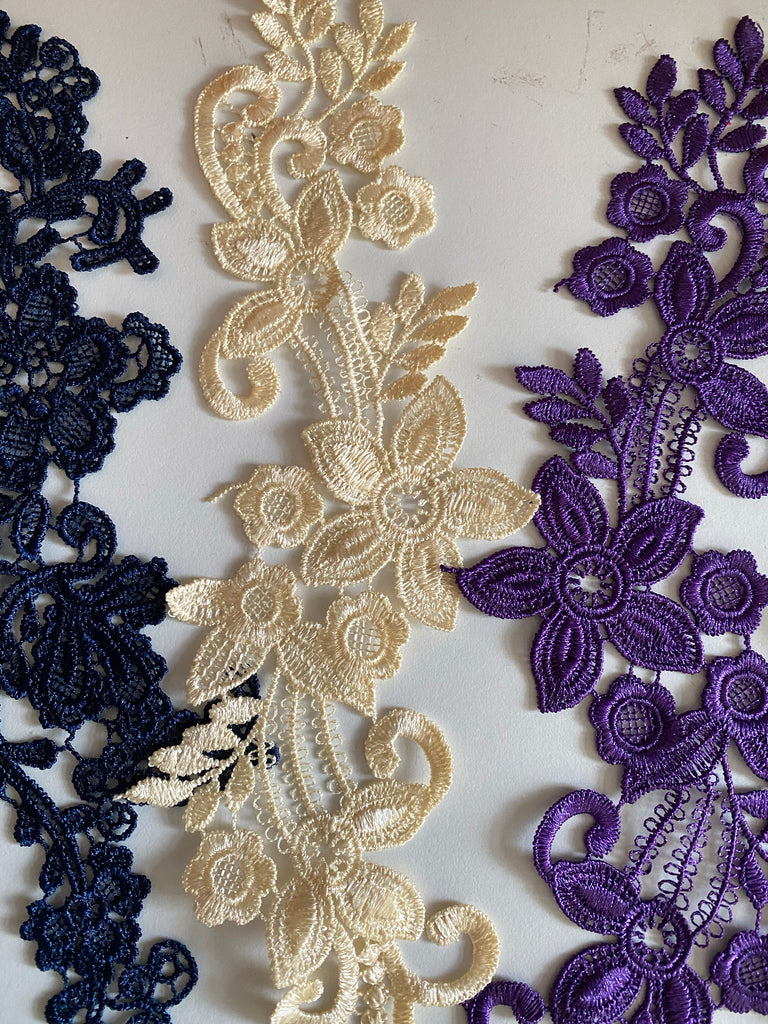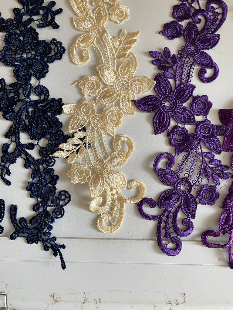 Bundle 5pcs lace applique navy purple cream embroidered floral lace motif patch