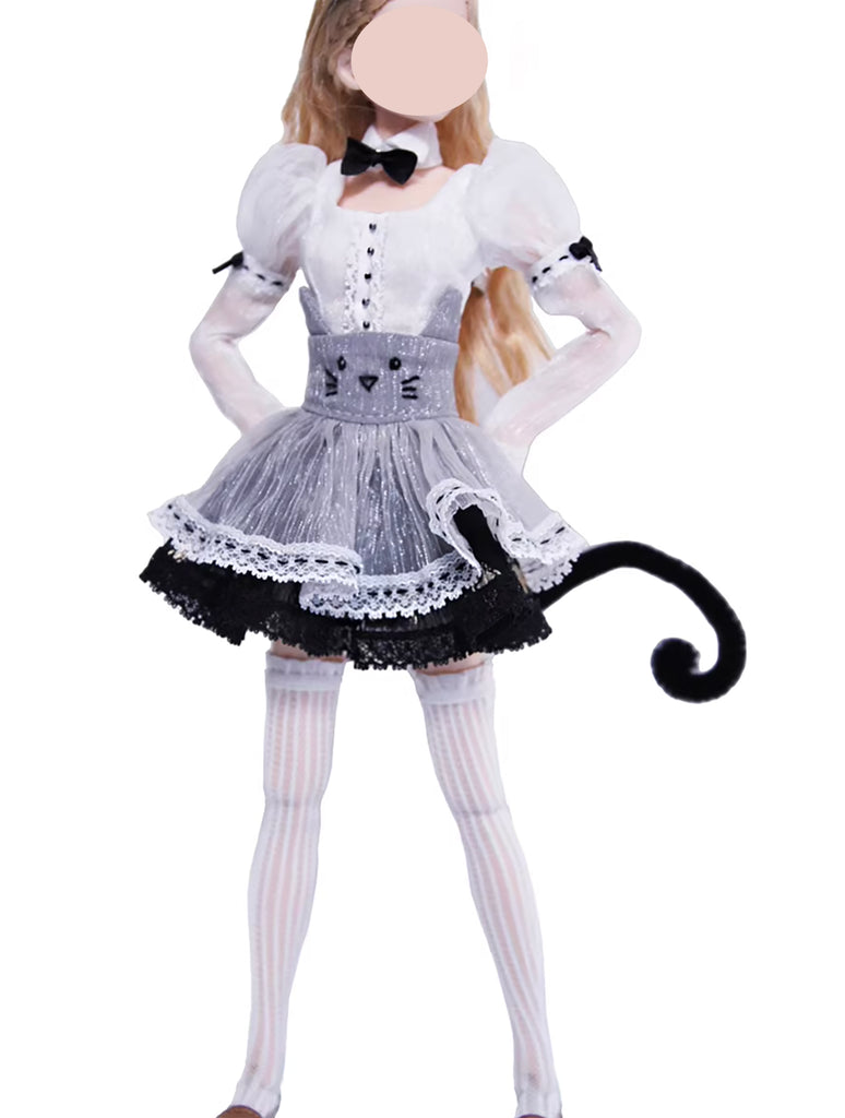 1:6 Scale Doll Cat Outfit Set Handmade Miniature Dress Skirt Stockings Accessories