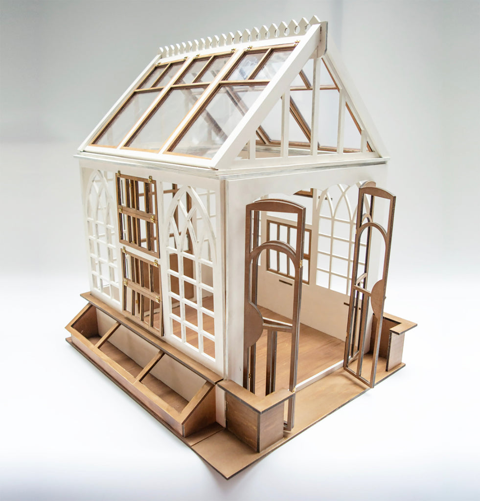 Miniature Greenhouse DIY Kit – 1/6, 1/12, 1/24 Scale Dollhouse Furniture Craft Kit Unfinished