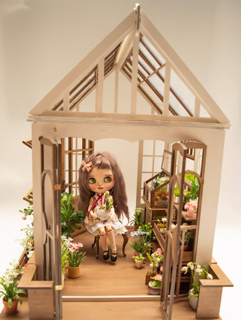 **Please notice this listing is selling miniature greenhouse DIY kit package only. The photos with finished pieces, dolls, lightings, plants, and decorations are for reference and styling purposes only, they are not included in the kit.**