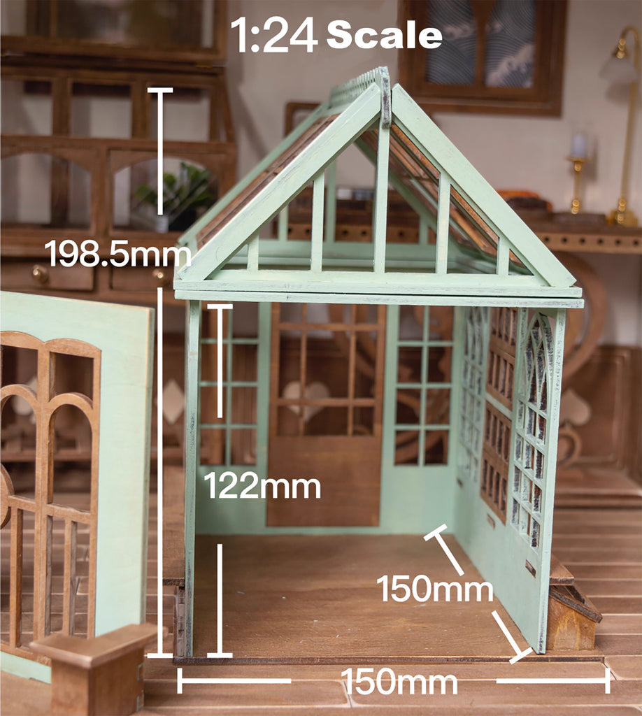 **Picture 5 & 9 are the 1:24 scale miniature greenhouse finishing look for reference purposes only. You will receive a flat package of DIY kit, not a finished product.**