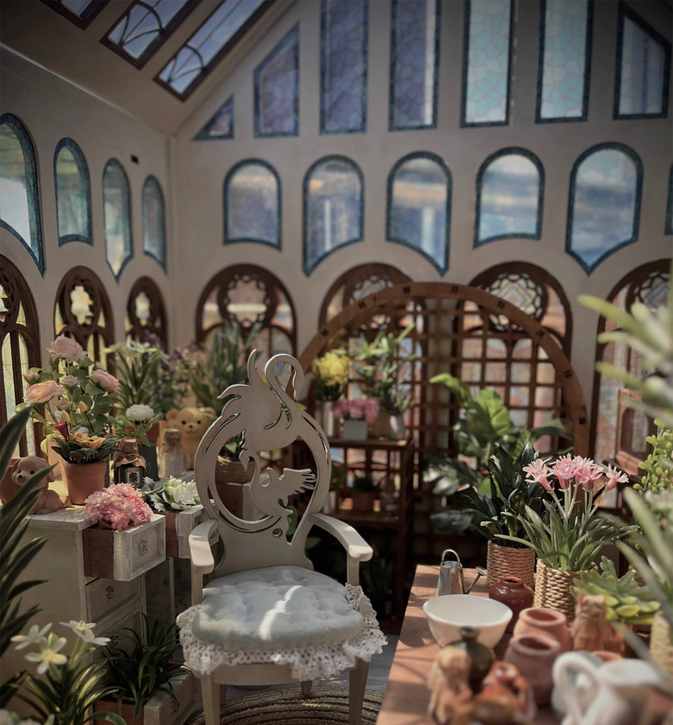 ✨ DIY Dollhouse Kit — Vintage Glasshouse with Balcony (Unassembled Kit)