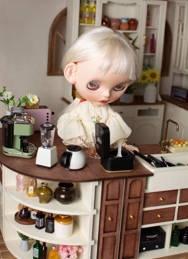 **Please notice this listing is for the miniature kitchen island DIY kit package only, pictures are for reference only. The dolls, dishes, plants, clothes and background decors are not included.**