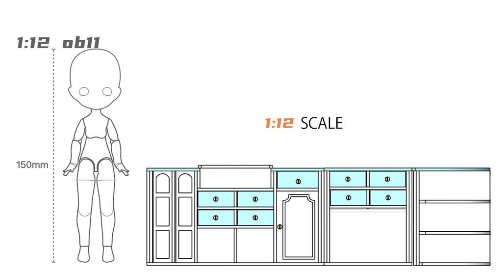 1:12 scale (for OB11 dolls, approx. 150 mm tall)