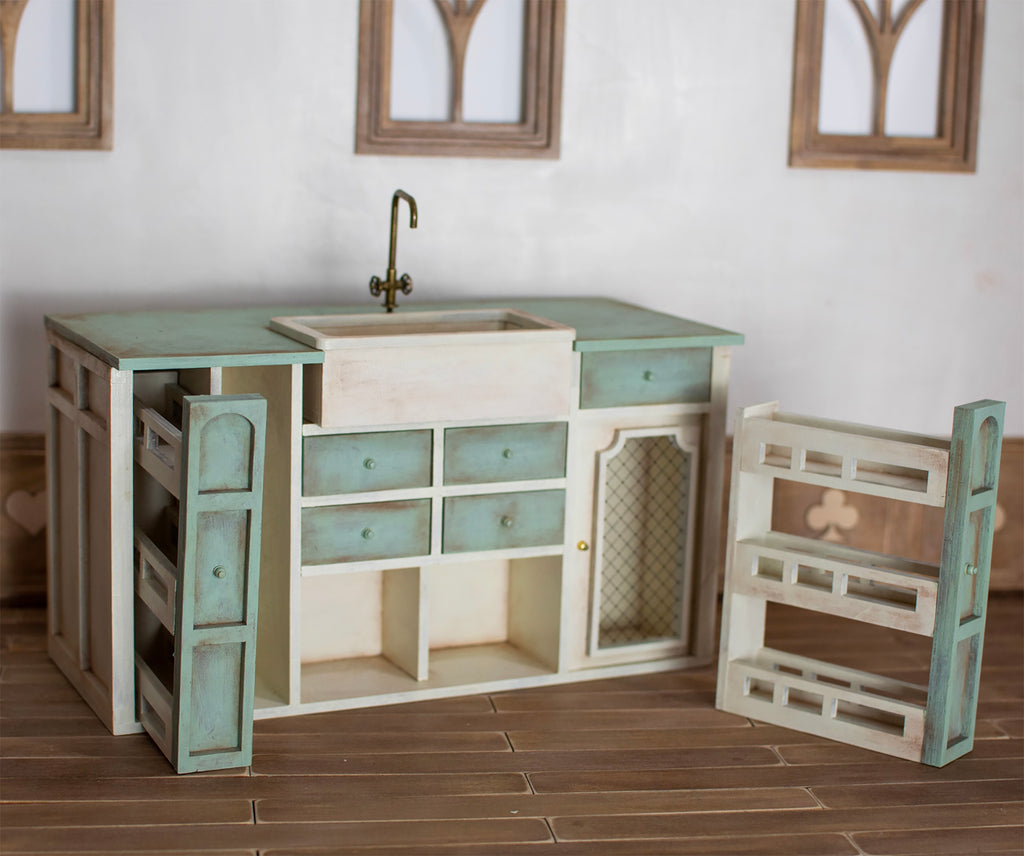 Miniature Kitchen Island DIY Kit – 1/12 & 1/6 Scale Dollhouse Furniture Cabinet (Not Assembled)