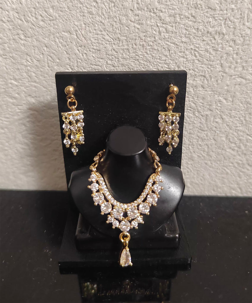 Each piece features elegant rhinestone detailing in a classic statement style.