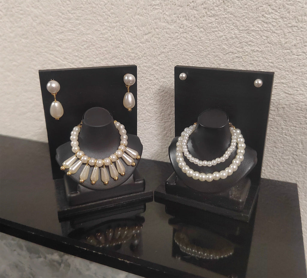 Set of 3 Faux Pearl Doll Jewellery 1:6 Scale Handmade Miniature Necklaces Earrings Bundle