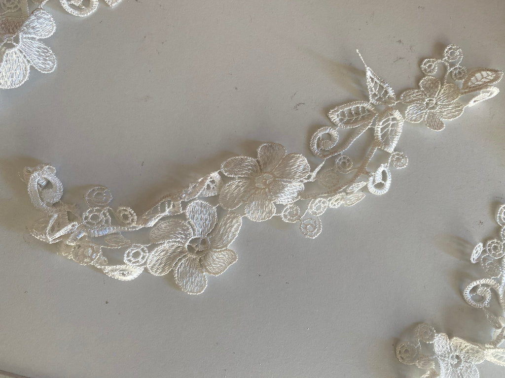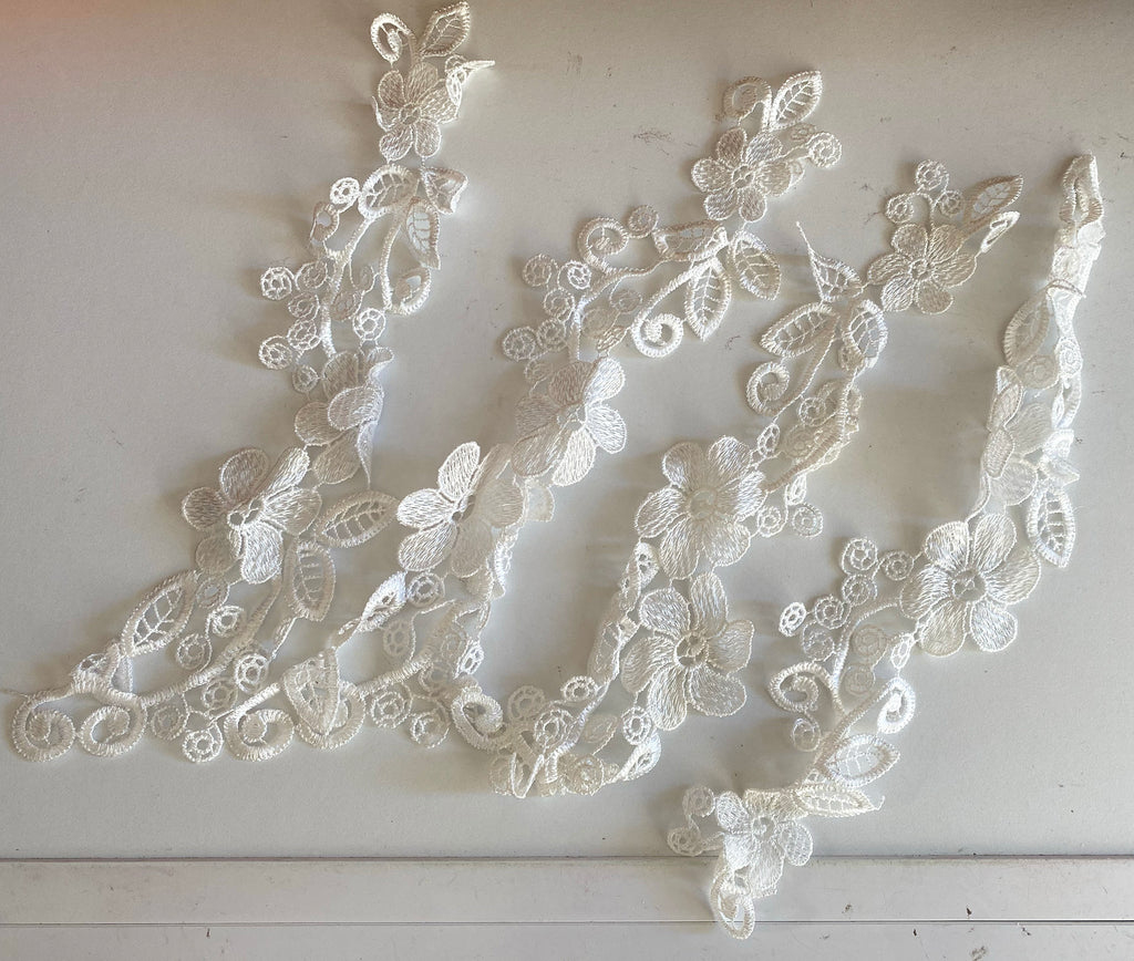 Bundle lot 4pcs ivory embroidered lace applique sew on floral lace motif patch is for sale.