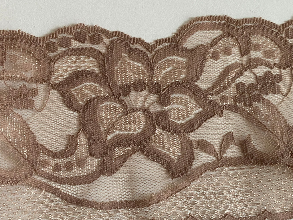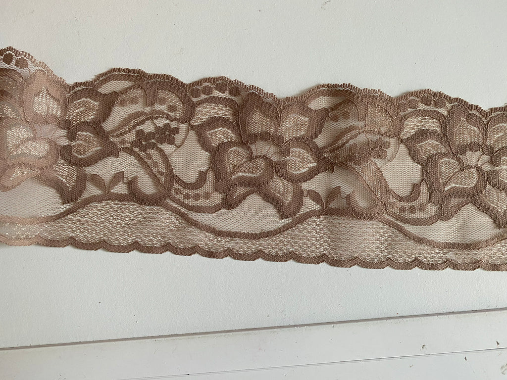 3.6 Meters Beige Brown floral embroidered lace trim is for sale.