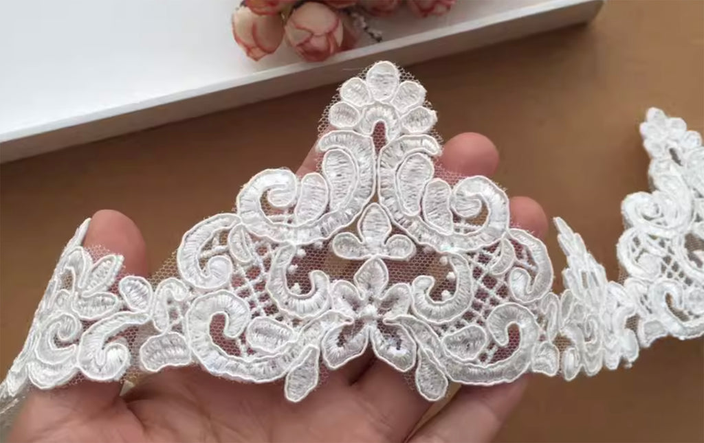 6 Yards Ivory Sequined Bridal Lace Trim Sequins Lace Edge for Wedding Dress Veil