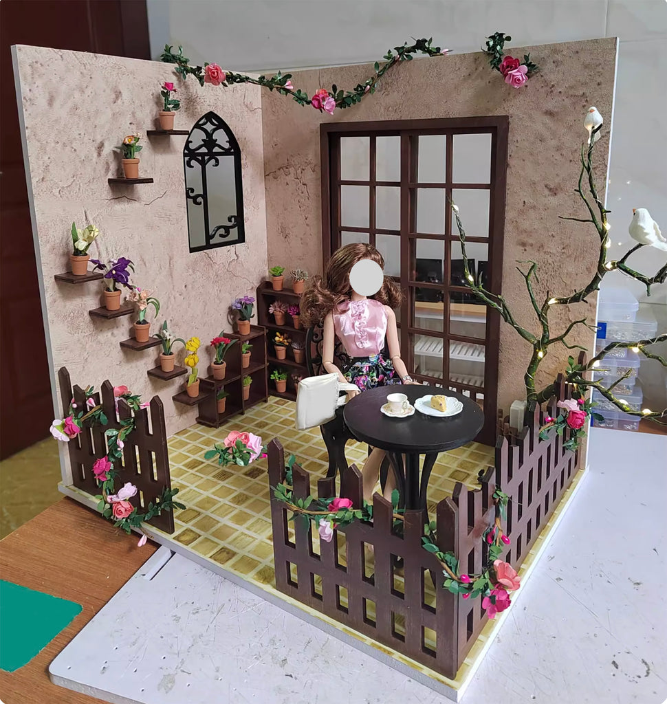 1:6 Miniature Garden Scene Dollhouse Kit – Pre-Furnished Panels Flat Pack Diorama Scene