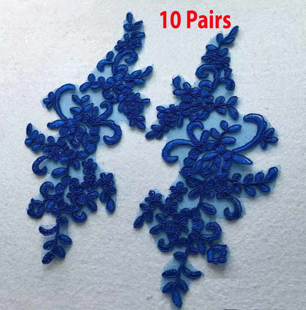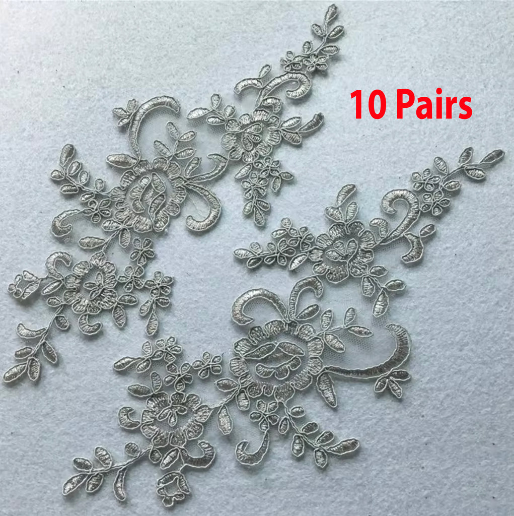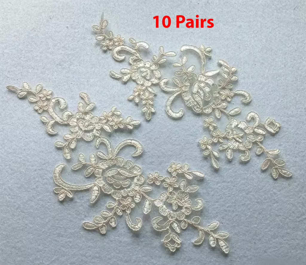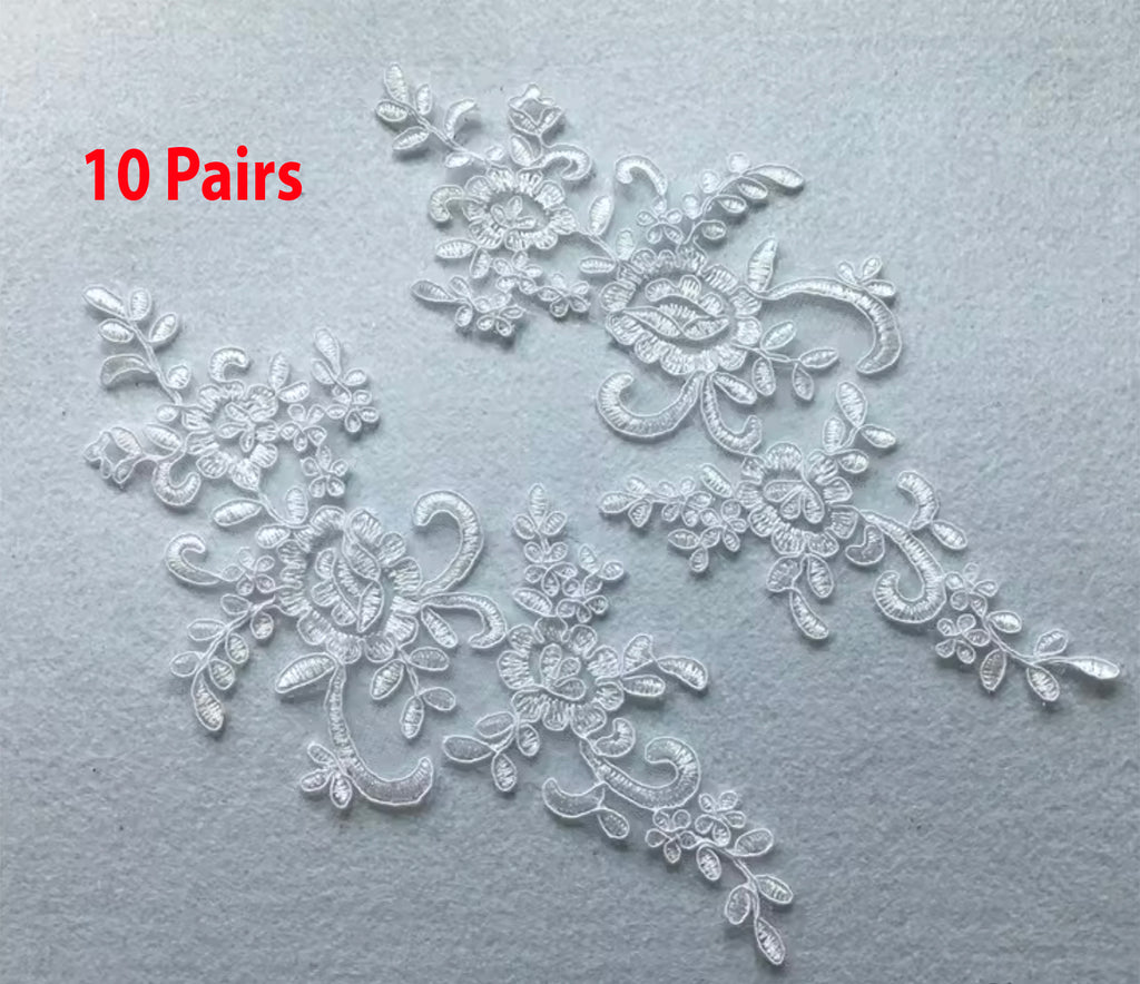 10 Pairs Embroidered Lace Appliques – Floral Lace Trim for Sewing, Bridal, and Craft Projects