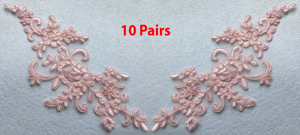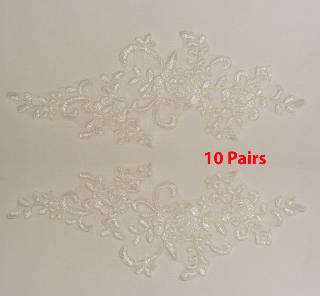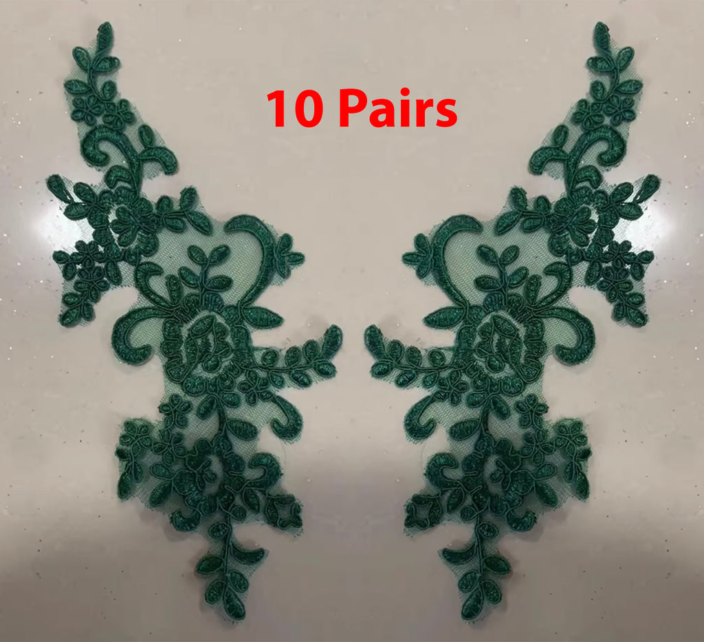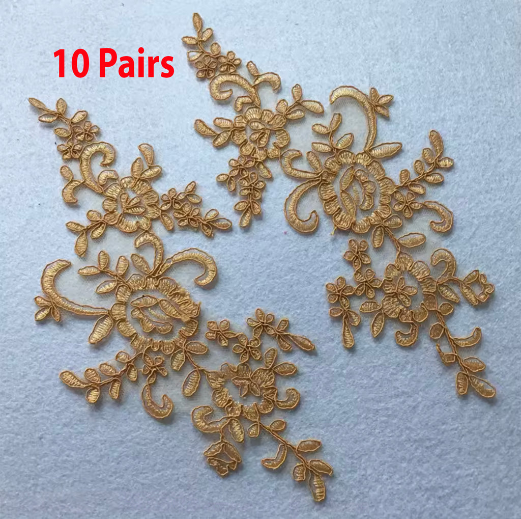 10 Pairs Embroidered Lace Appliques – Floral Lace Trim for Sewing, Bridal, and Craft Projects