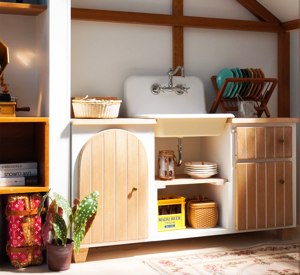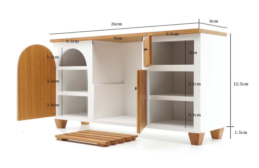 Craftuneed 1:6 Scale Miniature Dollhouse Kitchen Wooden Cabinet Sink Tap Doll Bathroom Furniture Sink Cabinet Faucet