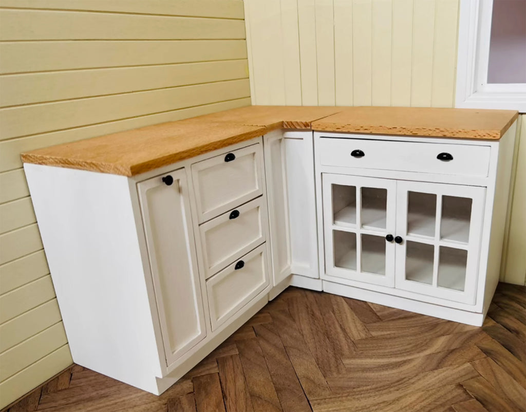 Craftuneed 1:6 Scale Handmade Dollhouse Wooden Kitchen Furniture Miniature Cabinets Storage Shelves & Drawers Island Unit and Cupboard is for sale.