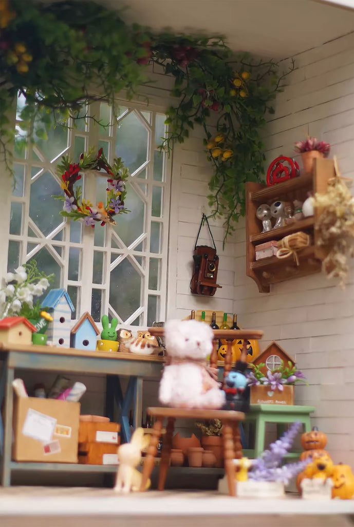 Craftuneed 1:6 scale Wooden Greenhouse Dollhouse Miniature Forest Cottage Diorama Dustproof Doll Display Box with Furniture Handmade