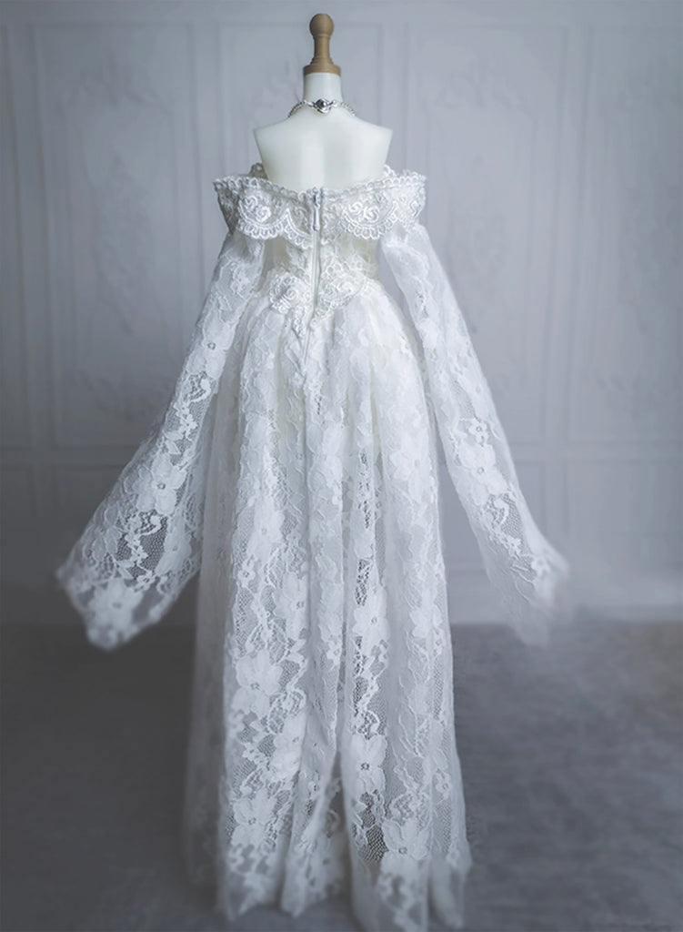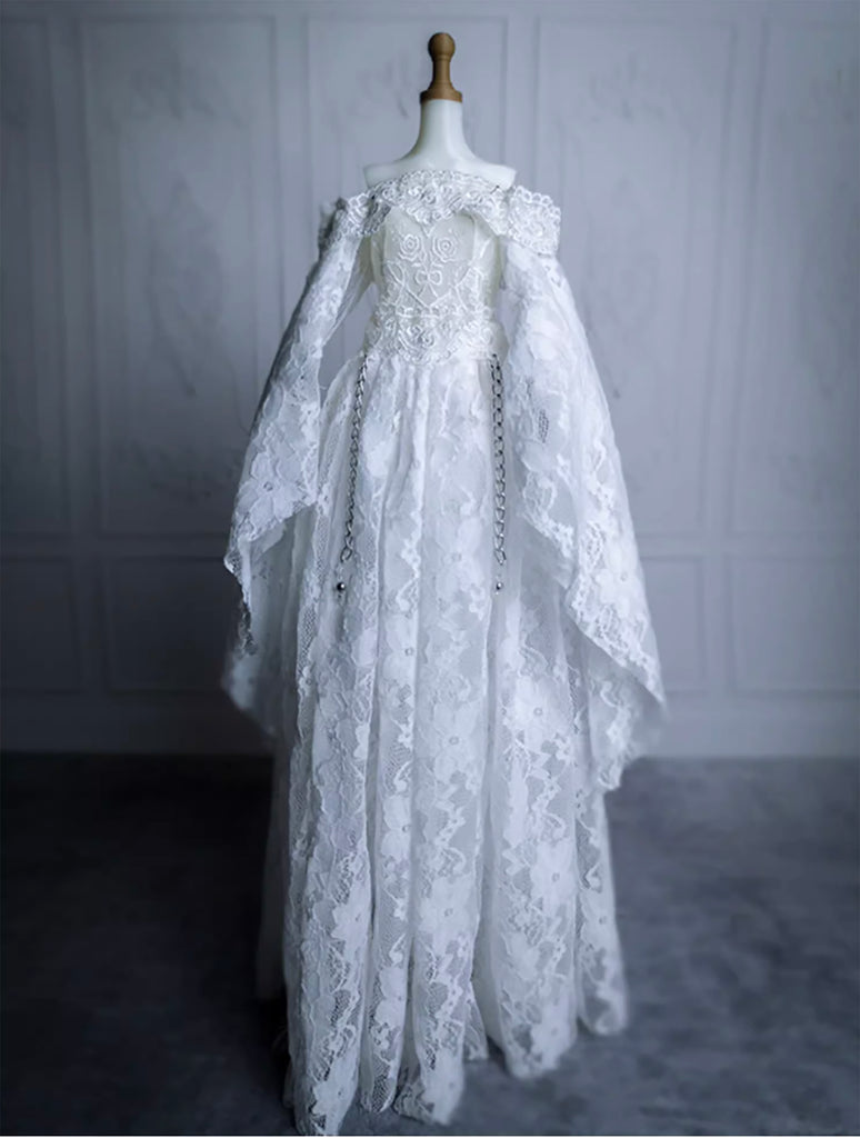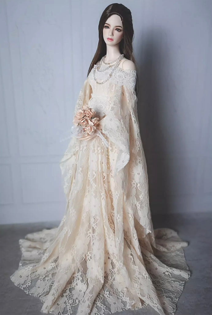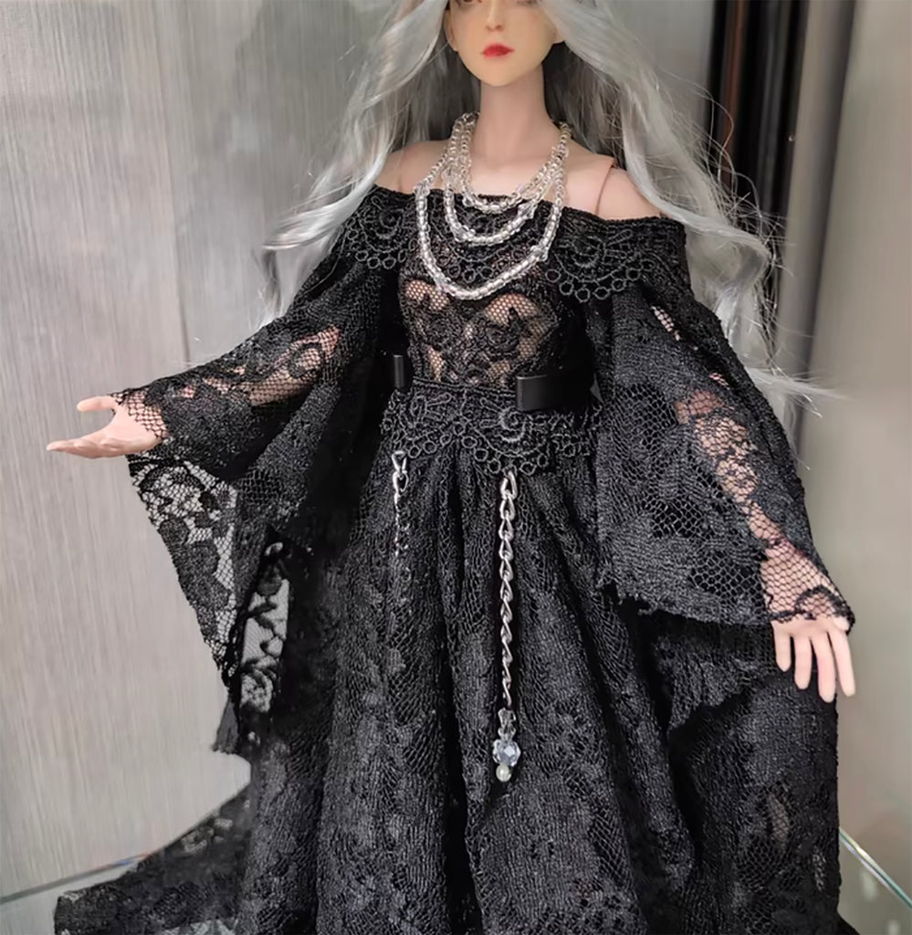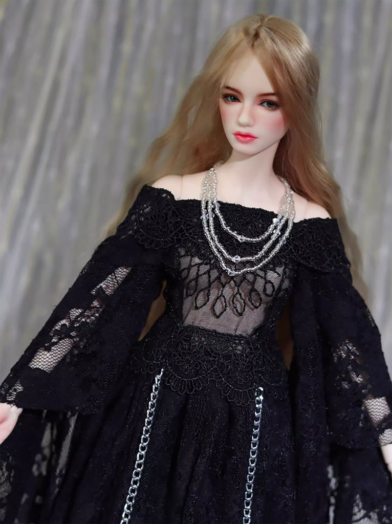 Craftuneed Vintage Lace Doll Dress with Miniature Necklace Set Handmade Custom Fit for 1/6 1/4 1/3 dolls Available black beige white is for sale.