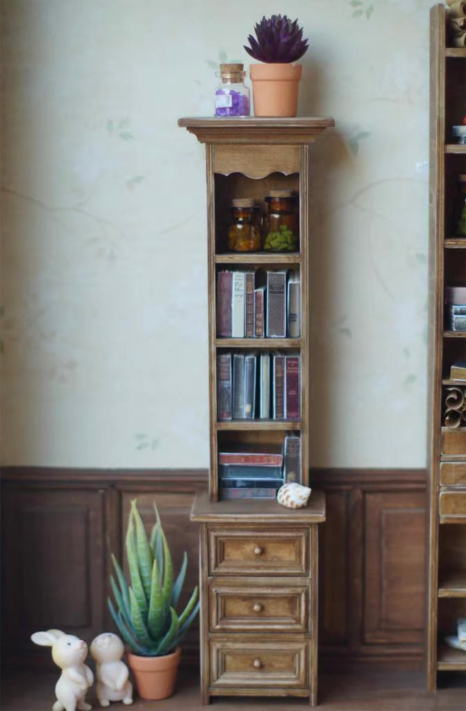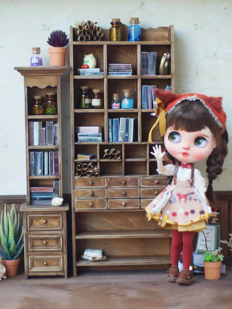 Dollhouse Vintage Wooden Furniture – Miniature Tall Cabinet & 9-Drawer Cabinet (1:6 Scale)