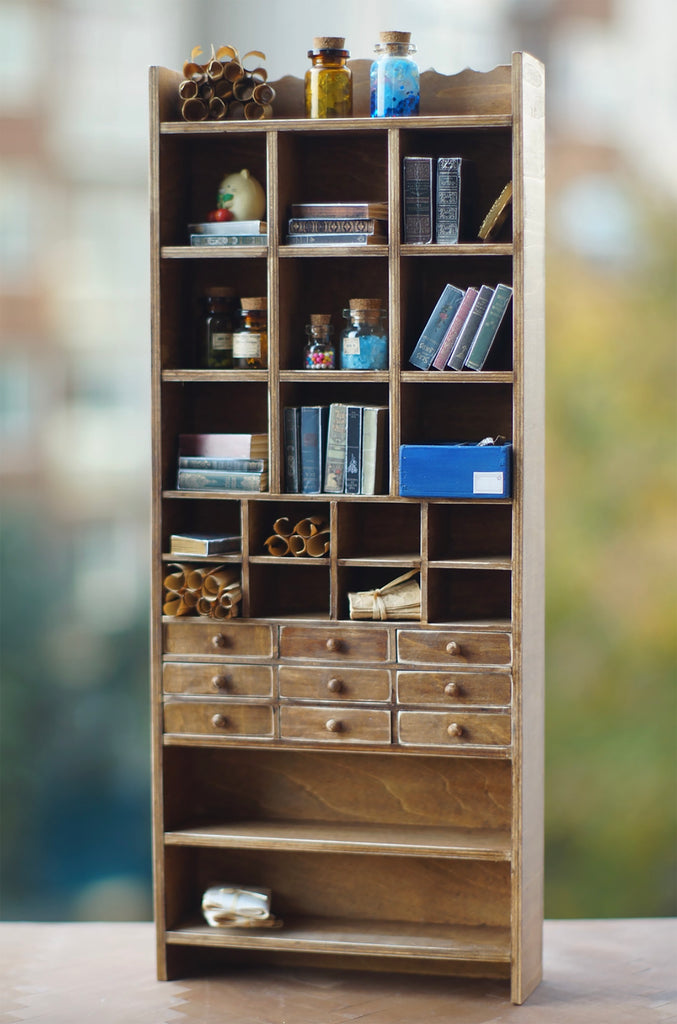 Dollhouse Vintage Wooden Furniture – Miniature Tall Cabinet & 9-Drawer Cabinet (1:6 Scale) is for sale.