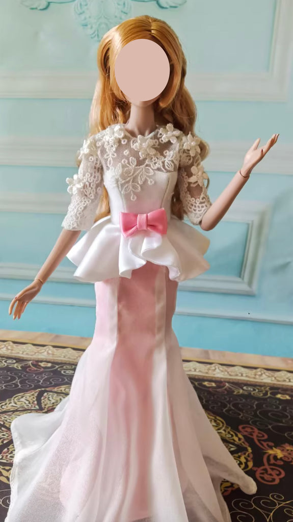 Handmade 1:6 Scale Doll Dress Miniature Elegant Mermaid Lace Evening Gown