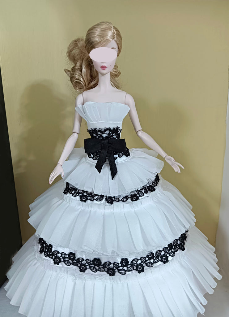 Each piece is carefully handmade with layered fabrics and delicate detailing, created especially for doll collectors and display purposes.