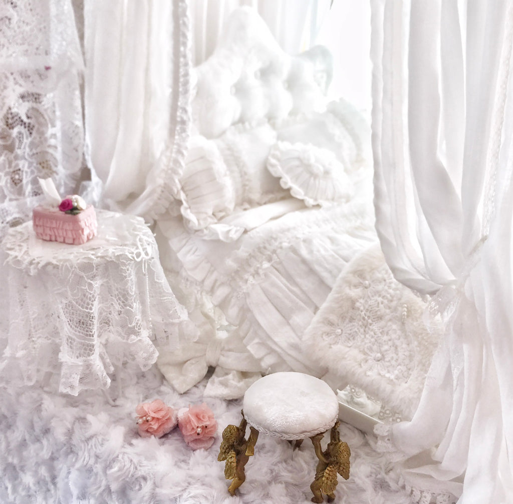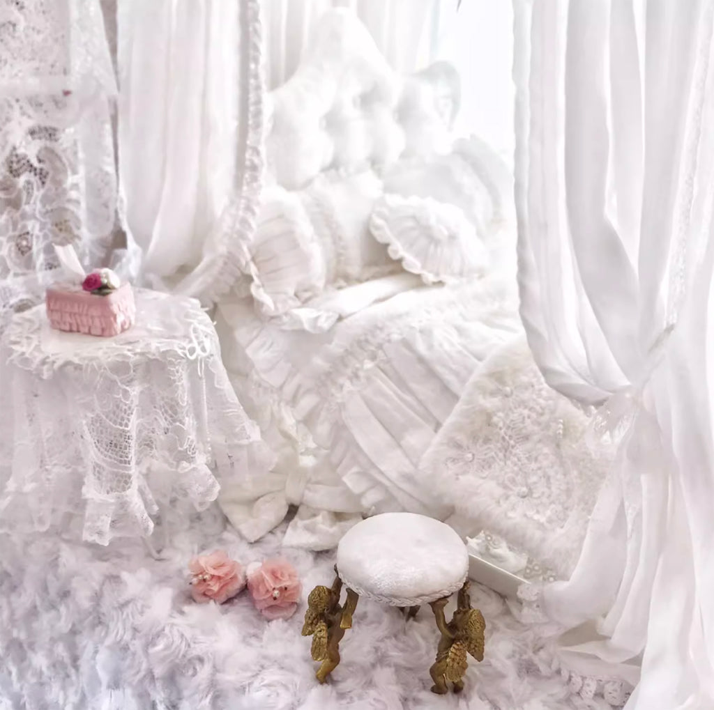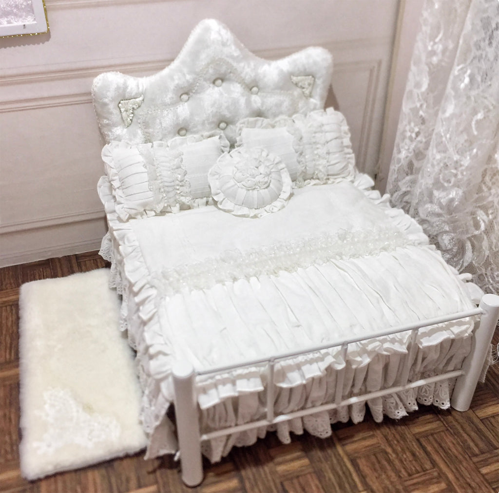 Handmade 1:6 Scale Dollhouse Bed Canopy & Bedding Set — French Style