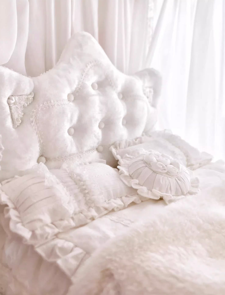 • This set also includes a matching headboard cover. It is designed to wrap around and fully cover the headboard area of your doll bed frame for a soft, elegant look.