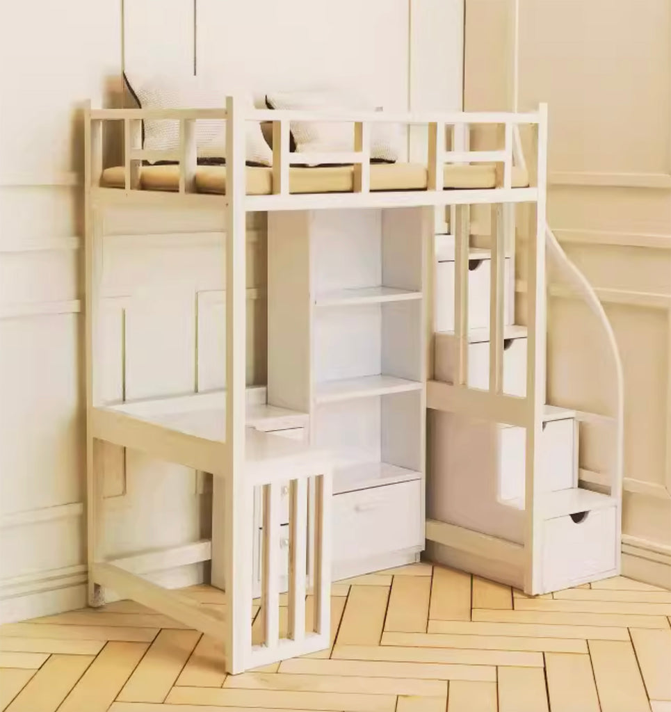Handmade Dollhouse High-Low Loft Bunk Bed Miniature Wooden Bedroom Furniture in 1:12 Scale