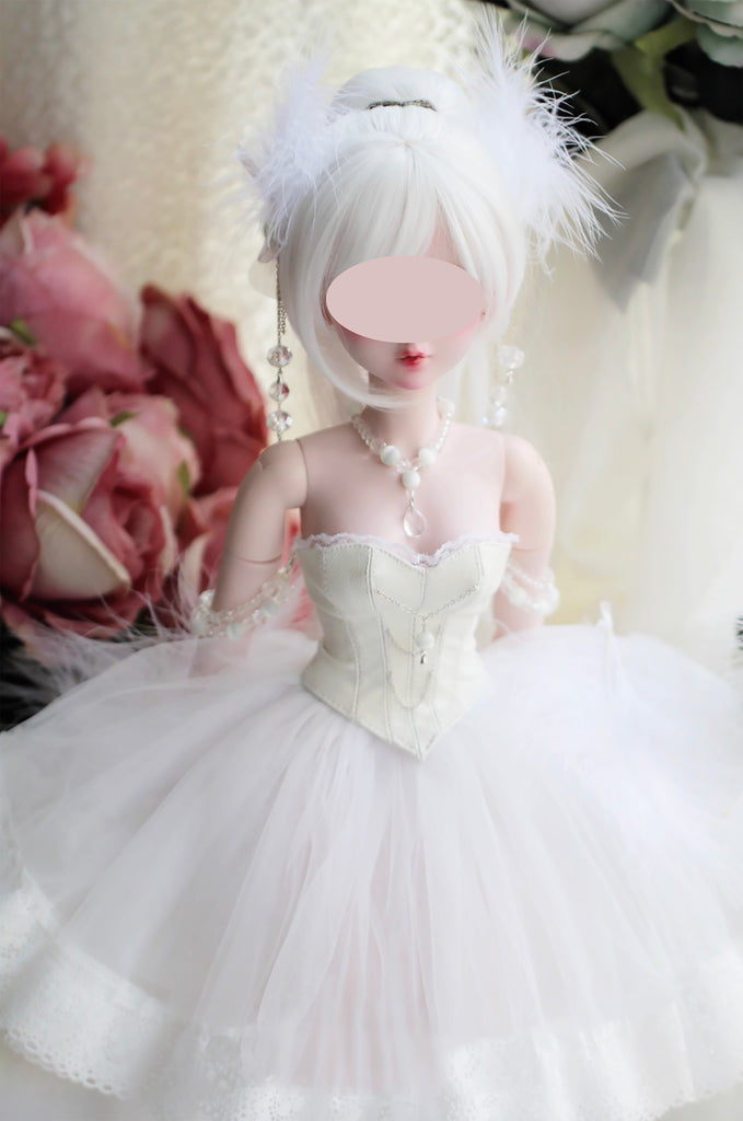 Handmade Miniature Doll Dress Outfit Corset Tulle Skirt Necklace 1/6 1/4 1/3 Custom Fit